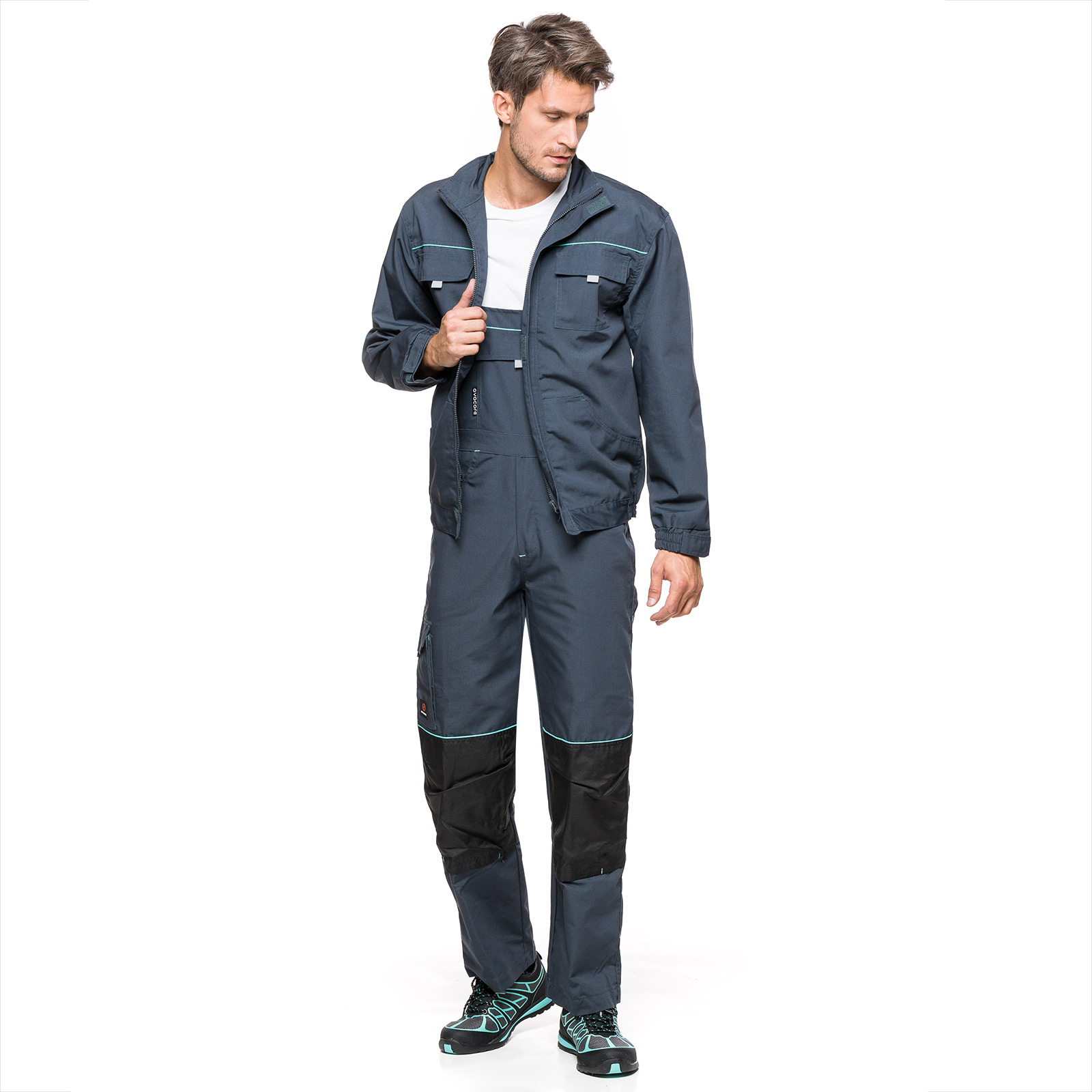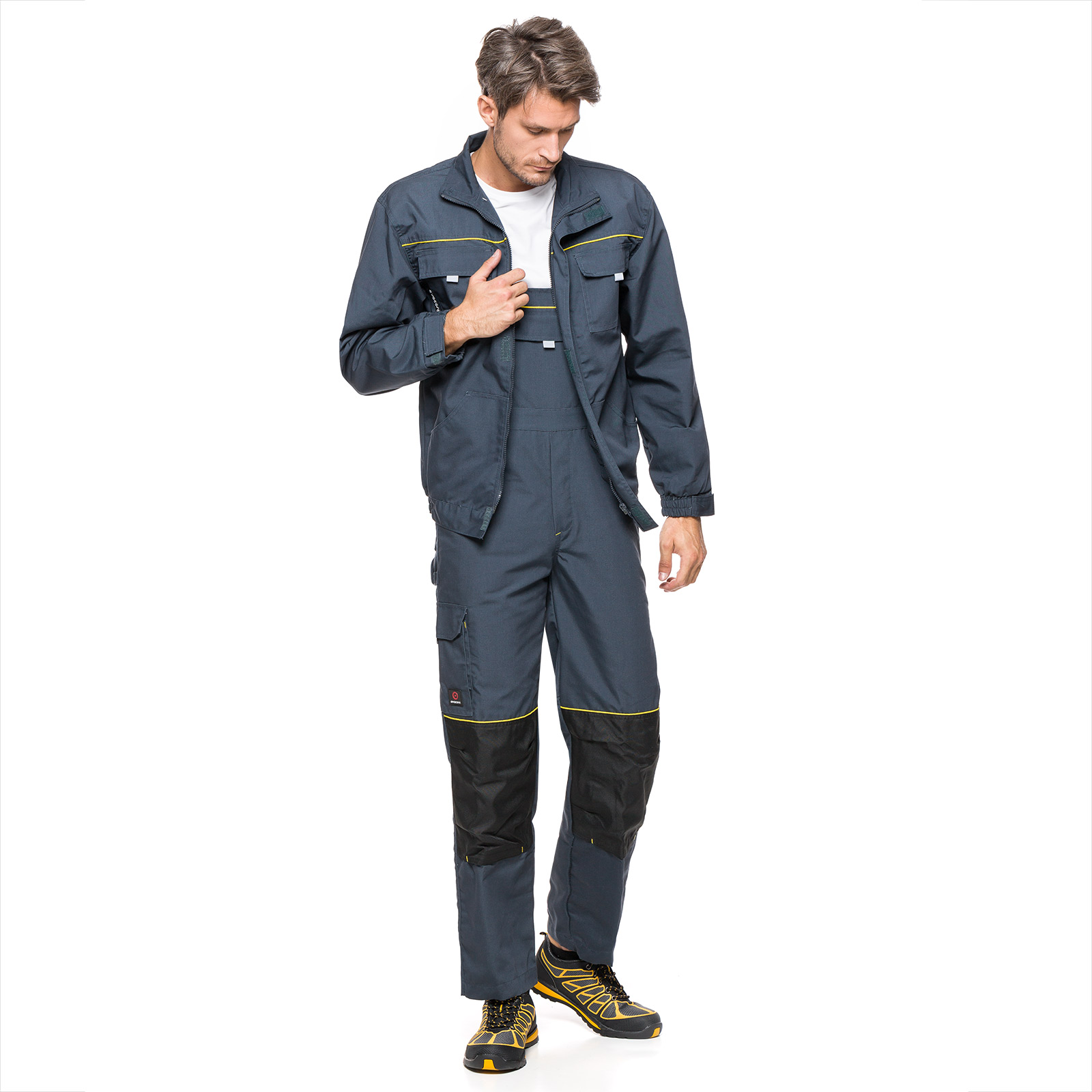 • Odpinane, pojemne kieszenie monterskie, które można dopasować do indywidualnych potrzeb.