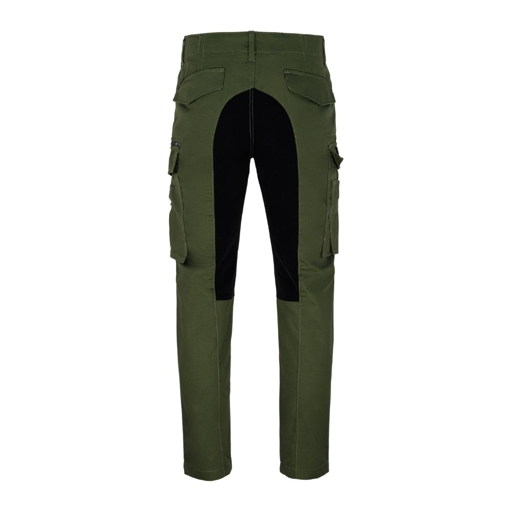 • Wzmocnione detale: Kieszenie biodrowe wzmocnione dodatkowymi taśmami wzdłuż krawędzi oraz tylne kieszenie z patkami na napy zwiększają trwałość i funkcjonalność.