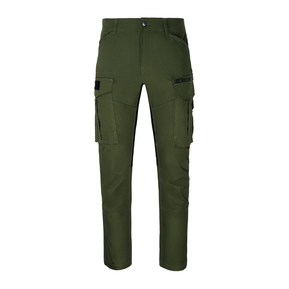 • Niezwykła funkcjonalność: 8 kieszeni, w tym dwie przestronne kieszenie cargo na udach z patkami zapinanymi na napy (jedna z dodatkową kieszonką na zamek), oraz wąska kieszonka na narzędzia, która sprawi, że zawsze będziesz mieć wszystko pod ręką.