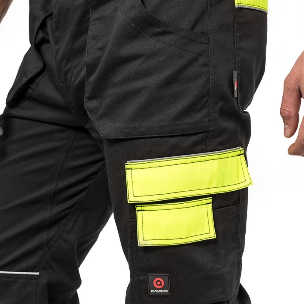 Spodnie ogrodniczki AVACORE LENNOX szaro czarne z czerwonymi elementami